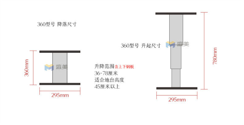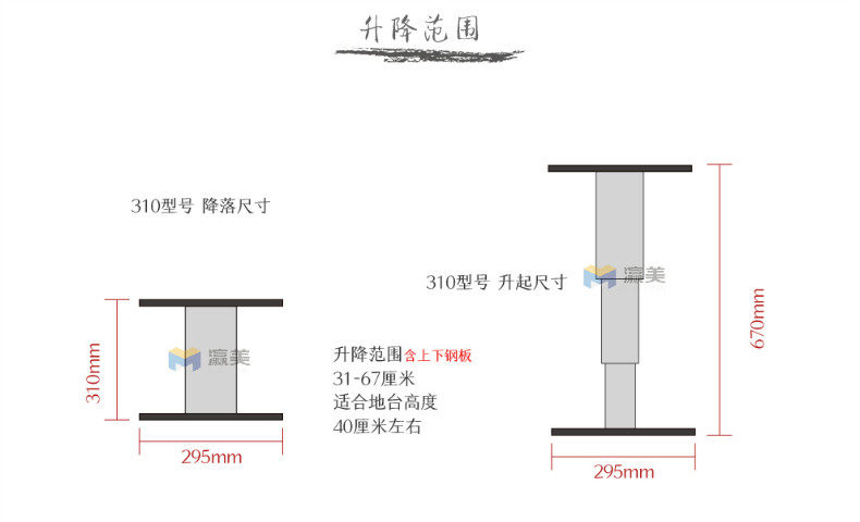Модель 420 представляет собой три колонны сплава алюминиевого сплава, а диапазон подъема может быть поднят от 42 см до 100 см;