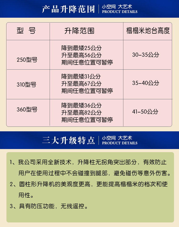 Хорошее качество экспорта, цилиндрический электрический автоматический подъемник Tatami, домашний круглый подъемный стол