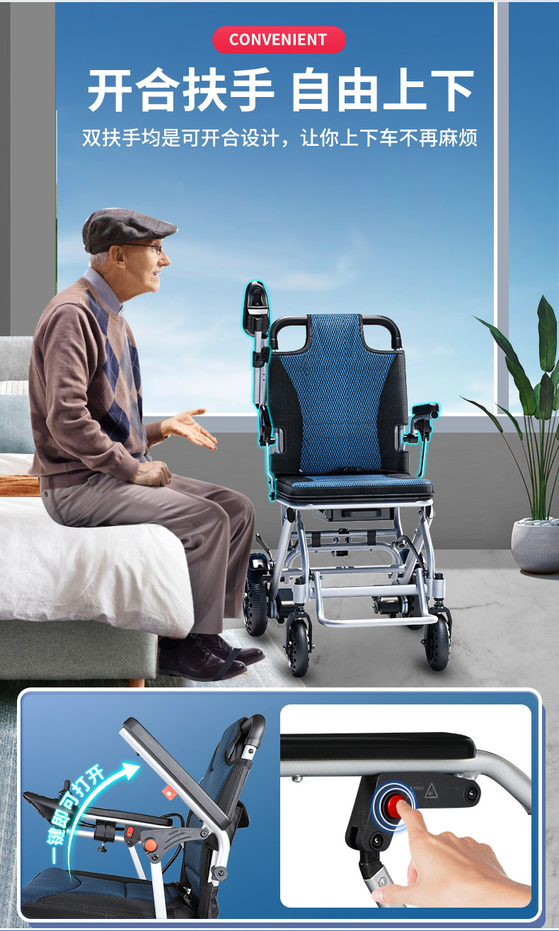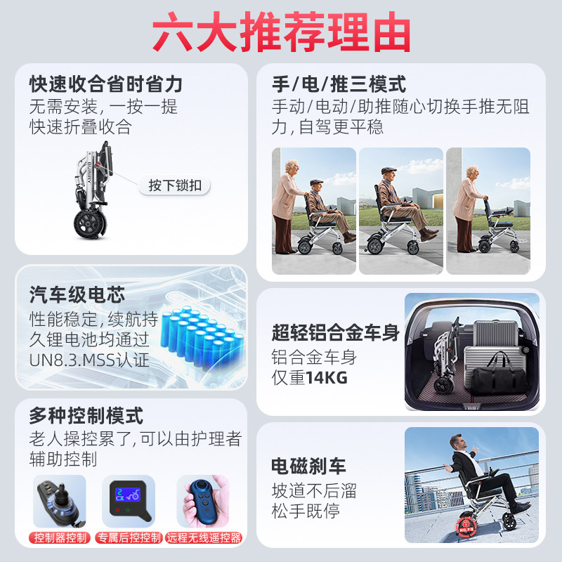 鱼跃 Электрическая инвалидная коляска легкая складная складывание сверхлегкого интеллектуального полностью автоматического скутера для пожилых людей и отключений