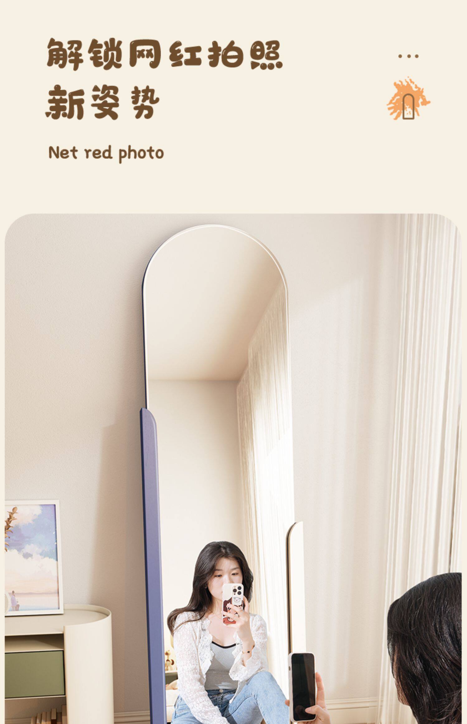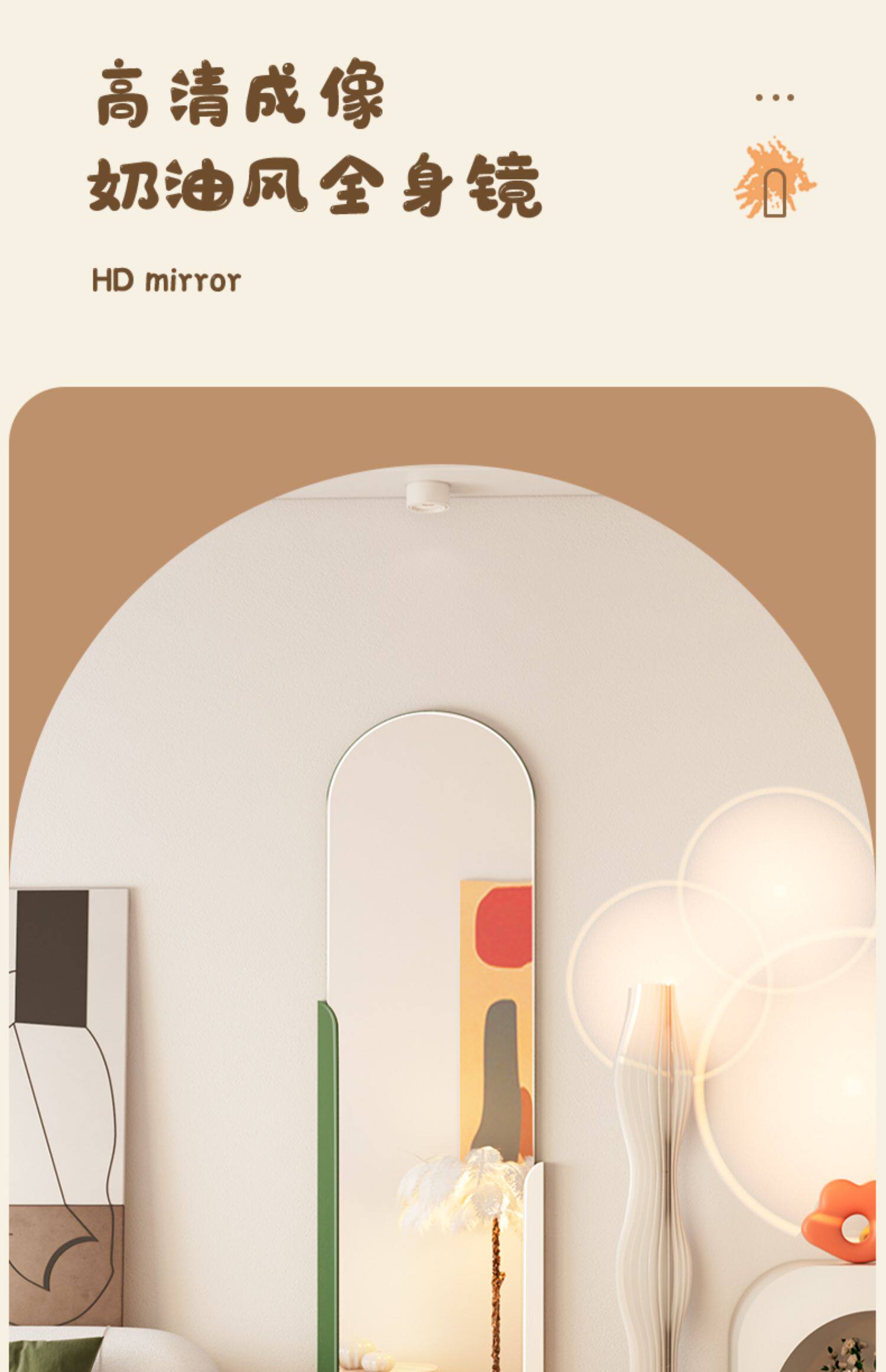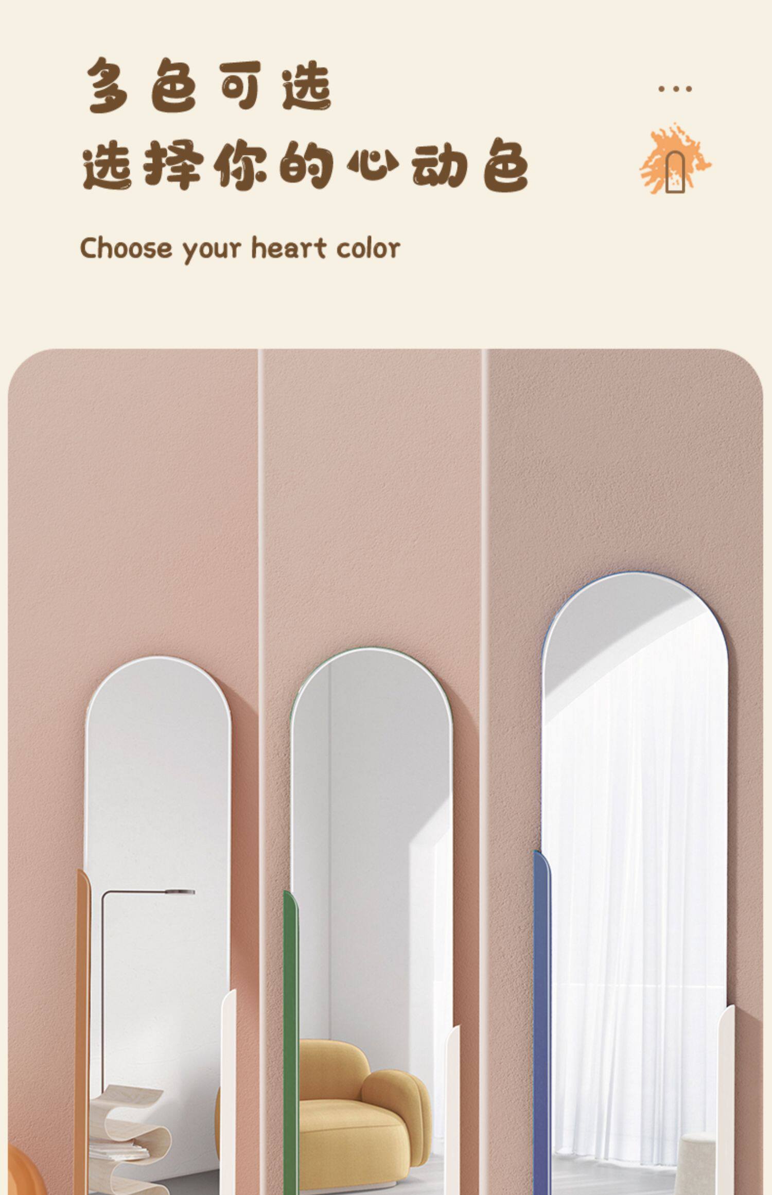 - 【Кофе+белый】 1,3 метра контрастного цвета цельного тела зеркало