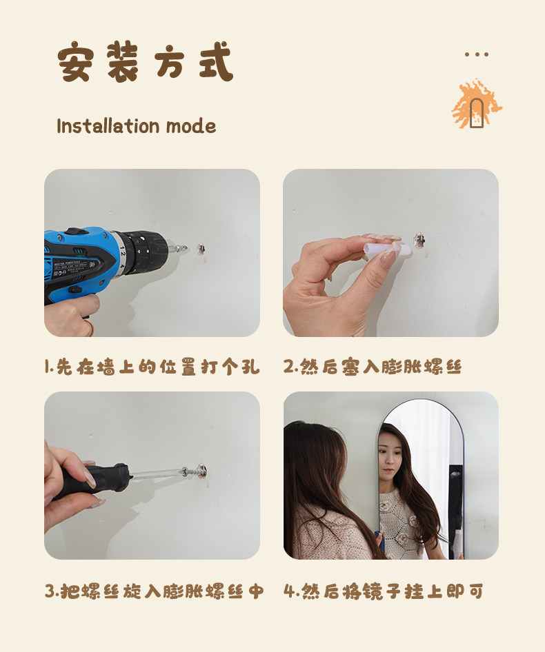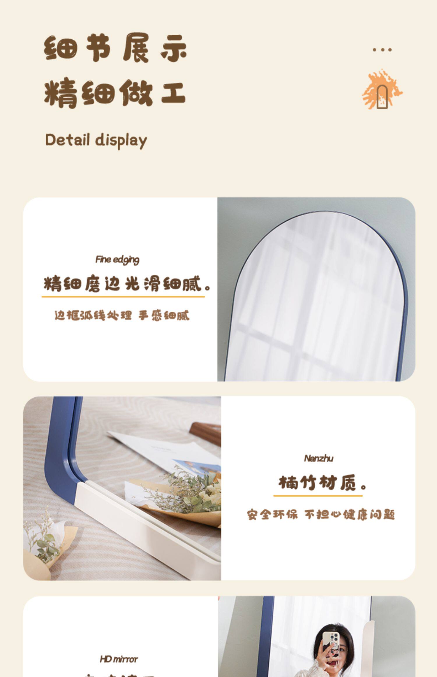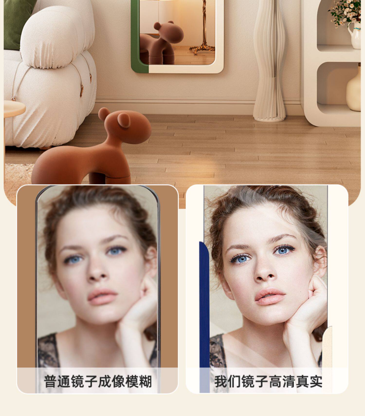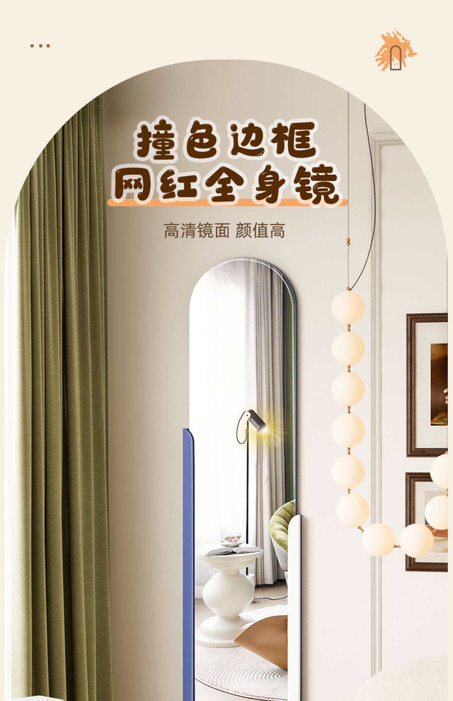 - 【Кофе+белый】 1,3 метра контрастного цвета цельного тела зеркало