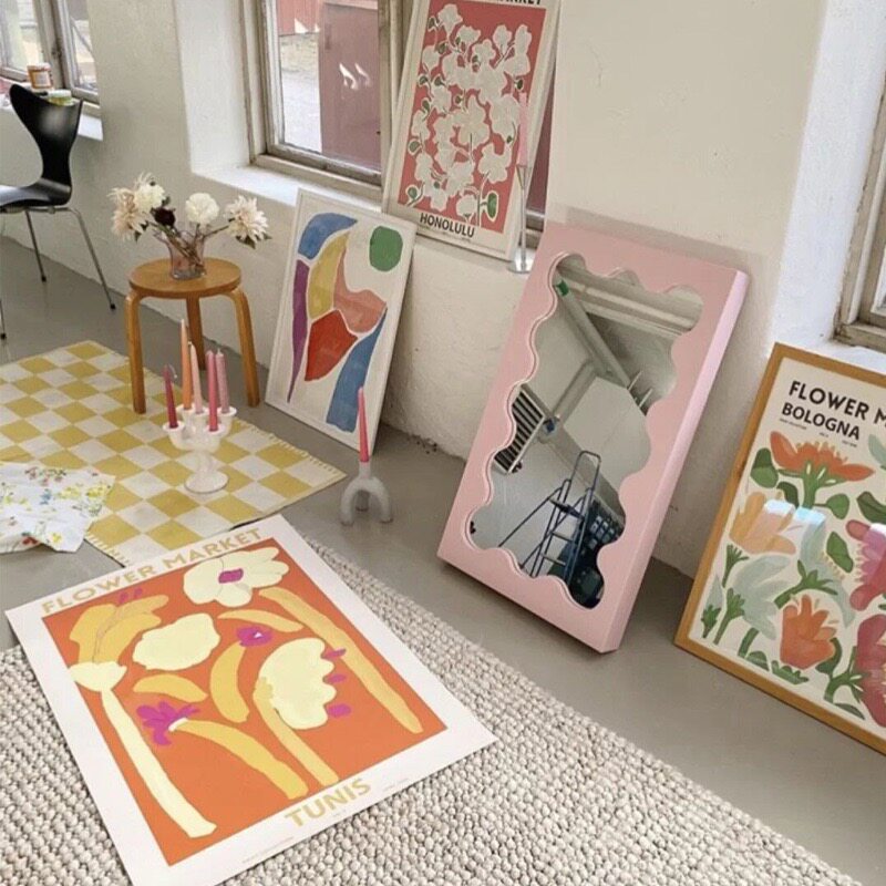 Интернет-знаменитости ins волнообразное зеркало скандинавское креативное зеркало для спальни магазин одежды на полу фото ретро примерочное зеркало зеркало в полный рост