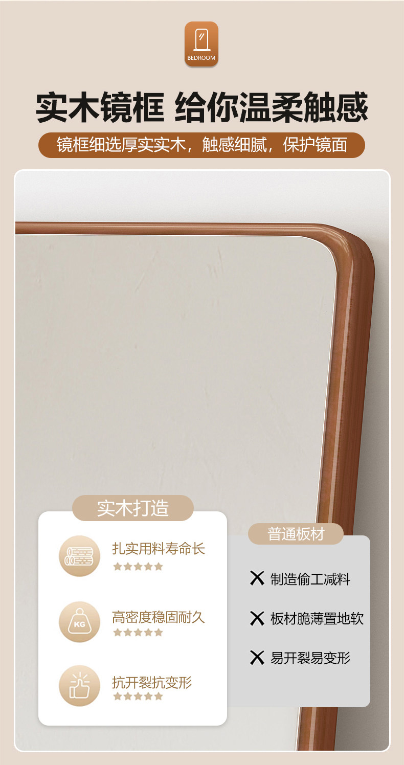 Взрывобезопасное квадратное большое зеркало из натурального дерева для спальни
