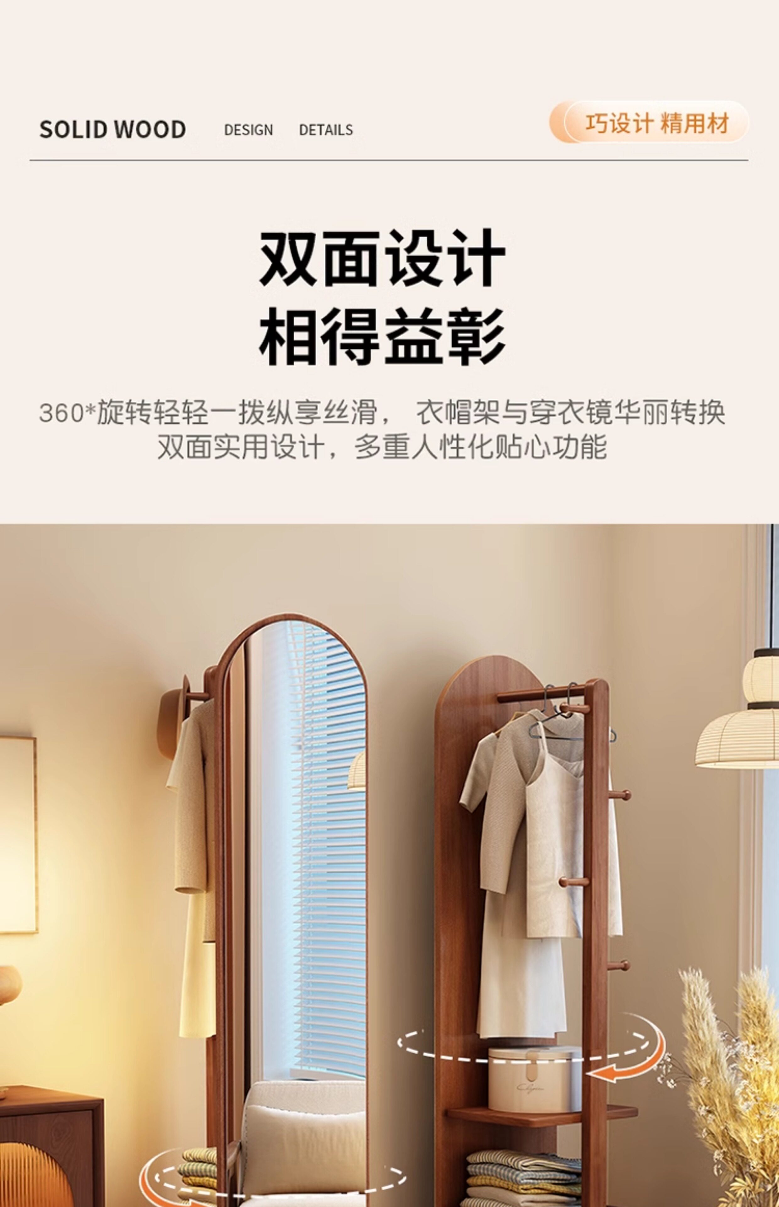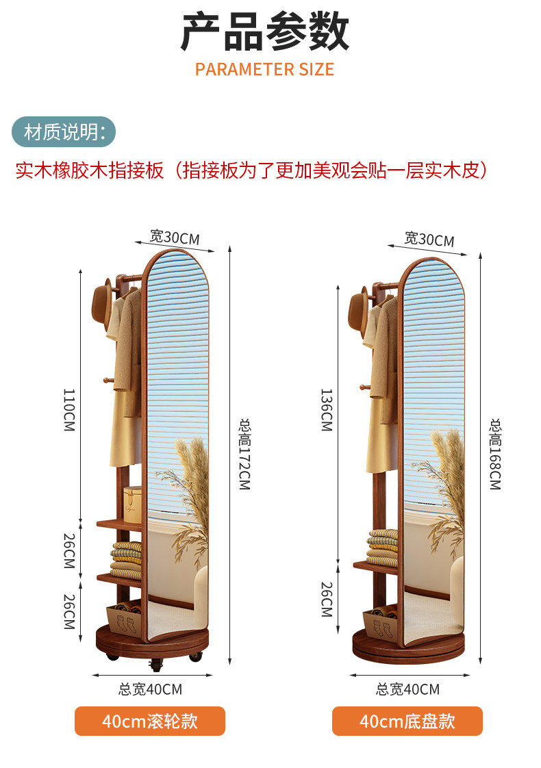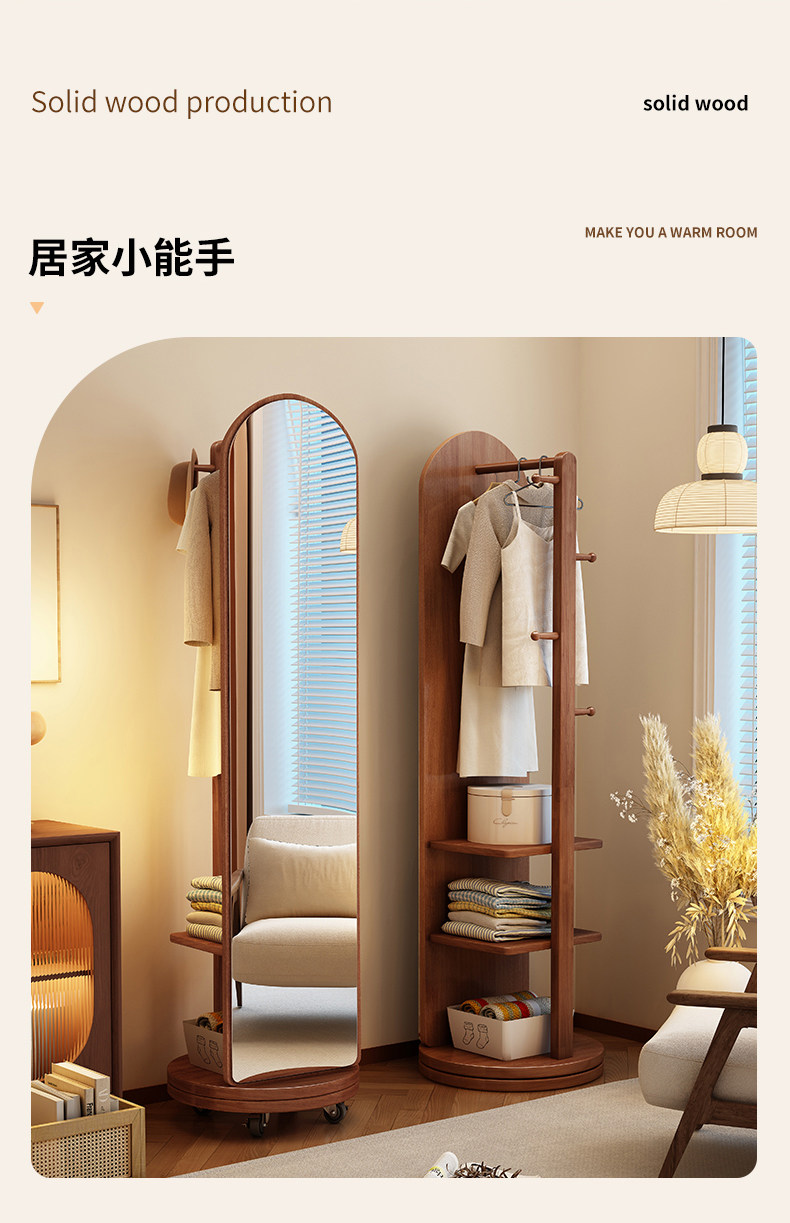 Зеркало в полный рост из массива дерева, зеркало в полный рост, зеркало от пола до потолка, домашняя спальня, вращающееся, компактное, встроенное зеркало в полный рост с вешалкой