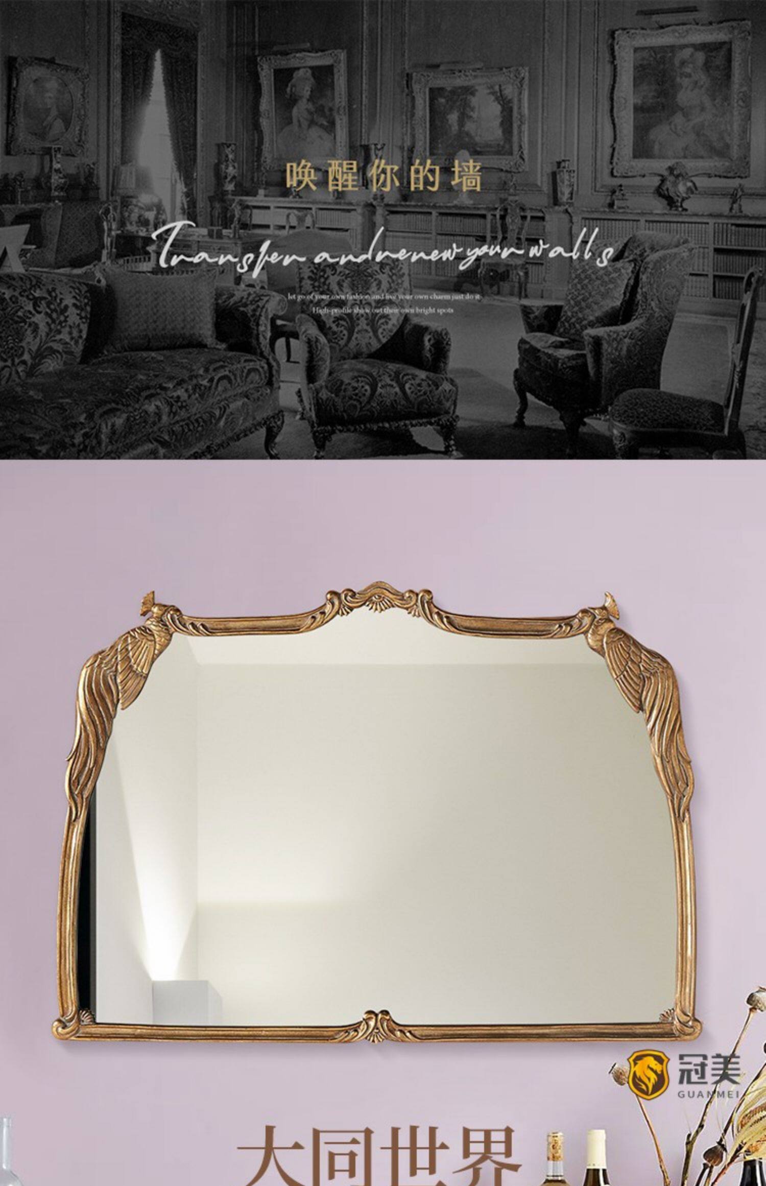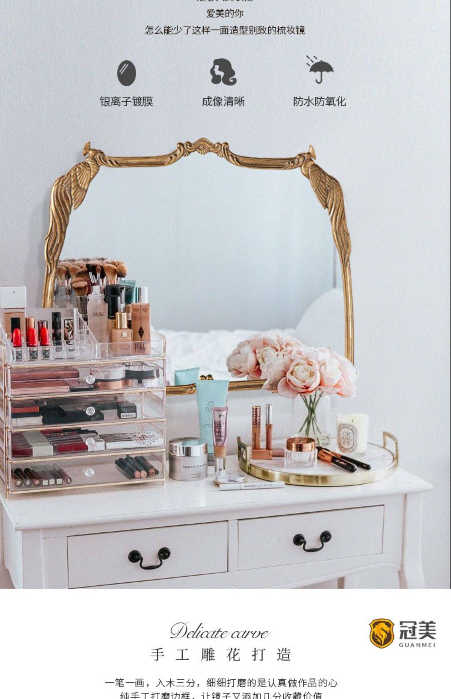 Ретро настольный настенный туалетный столик для спальни, зеркало