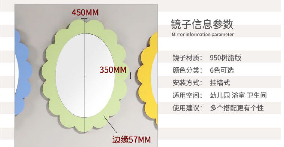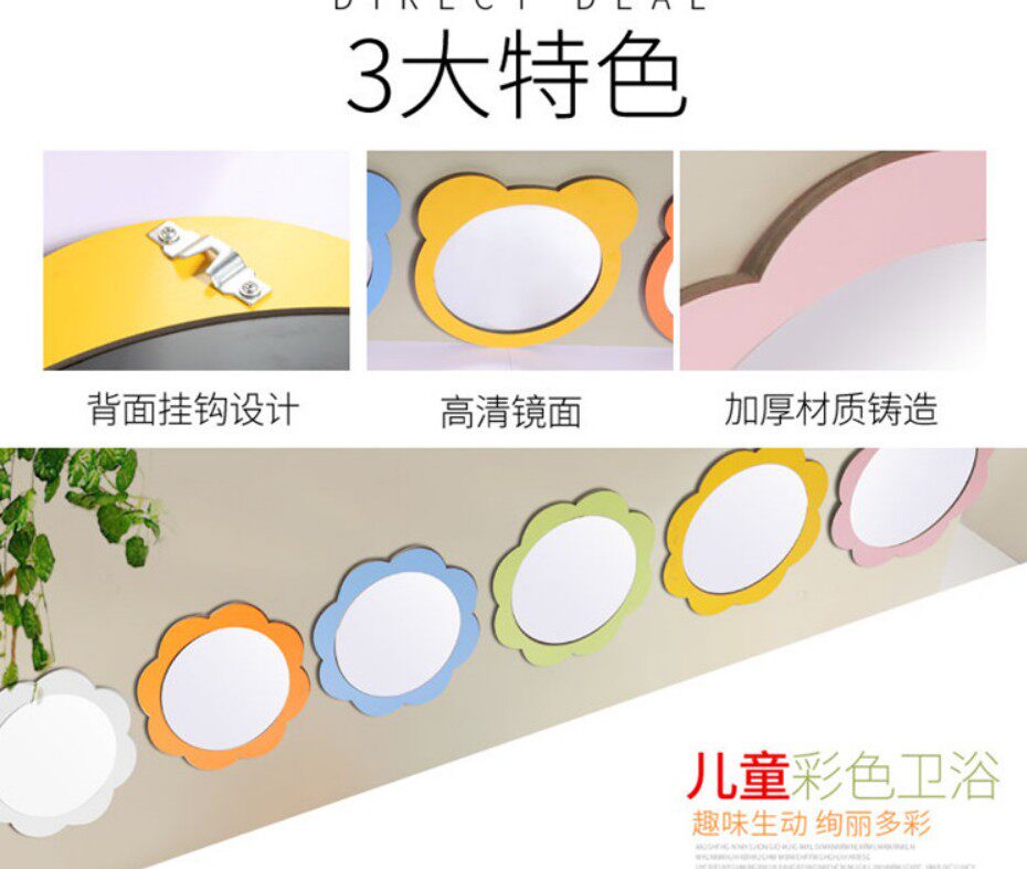 Мультяшное милое круглое настенное зеркало для детского сада