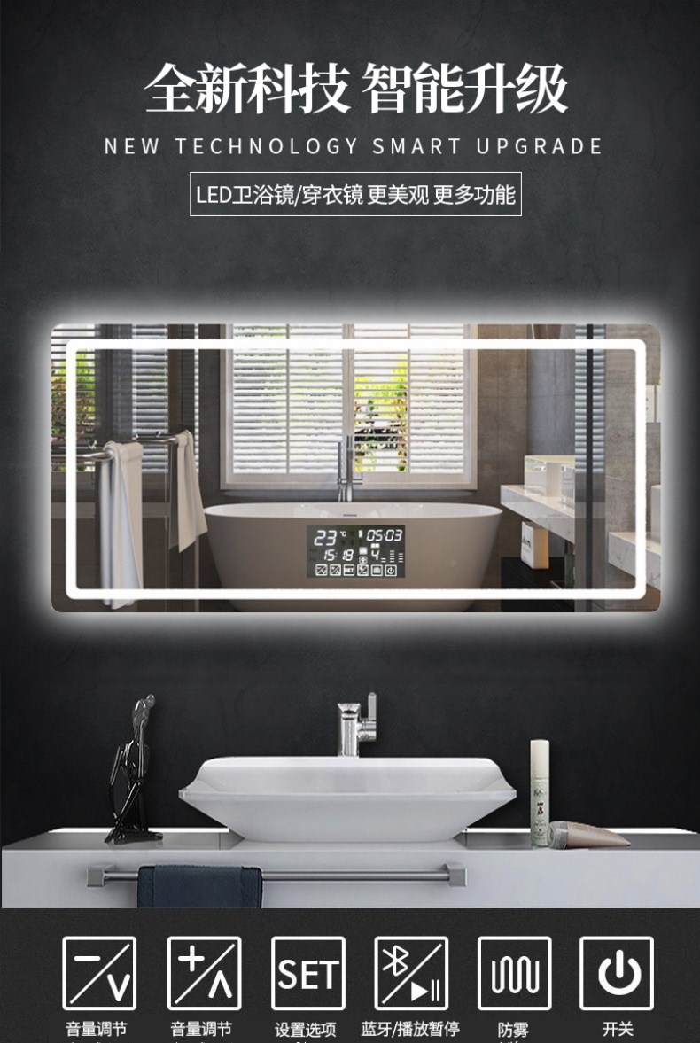 Зеркало, умный светодиодный подвесной светильник для ванной комнаты