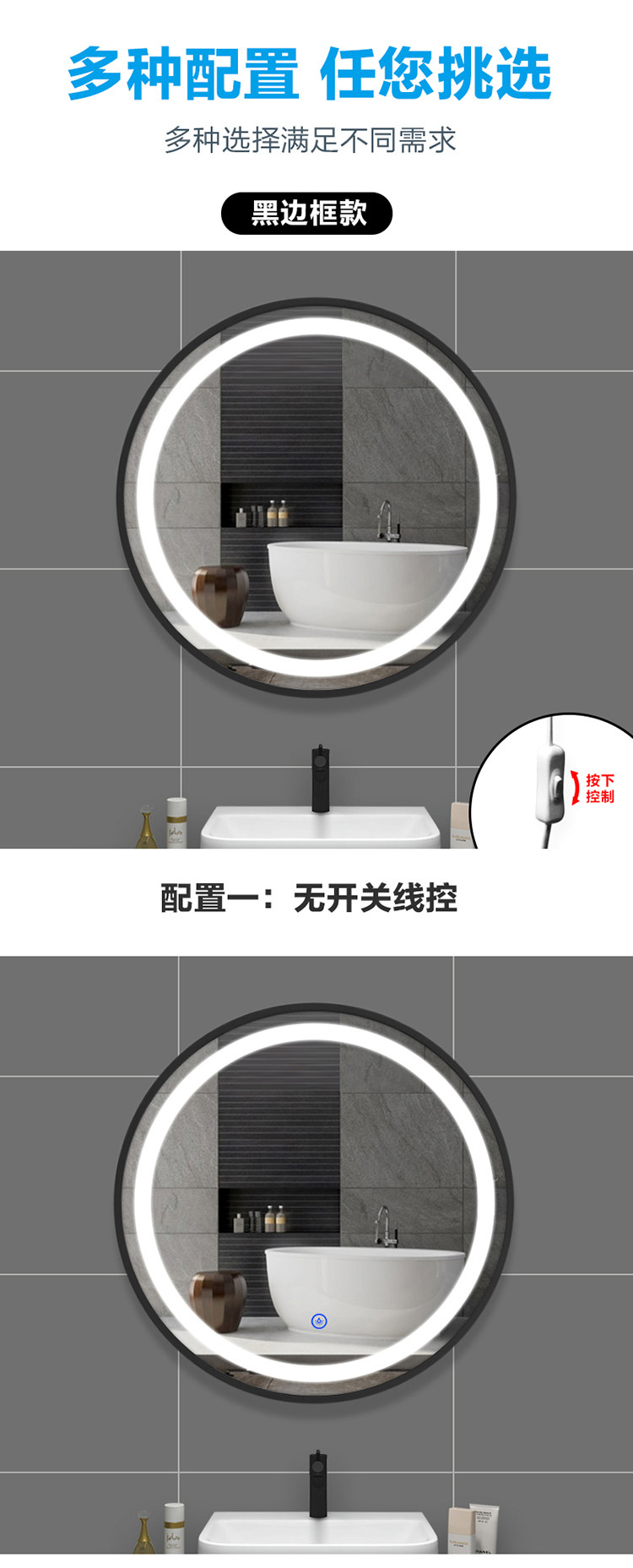 Светодиодная легкая комната для ванны Умное зеркало стены -туалетное зеркало с легким зеркалом для макияжа.