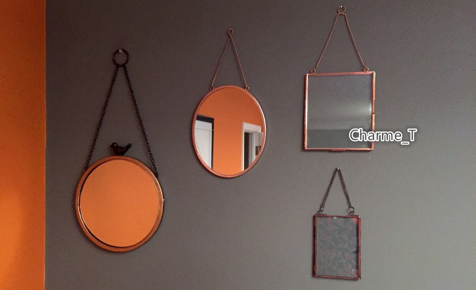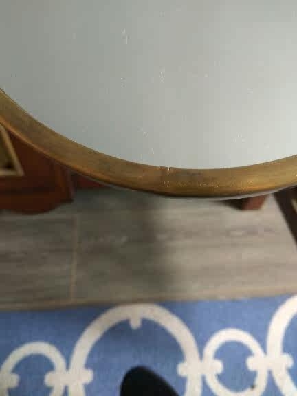 Овальное стеновое зеркало, с металлическими рамами и кольцами.