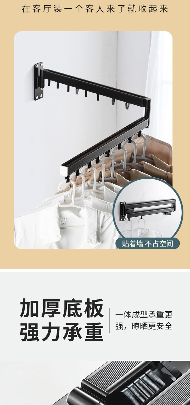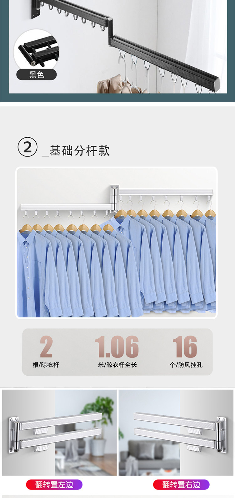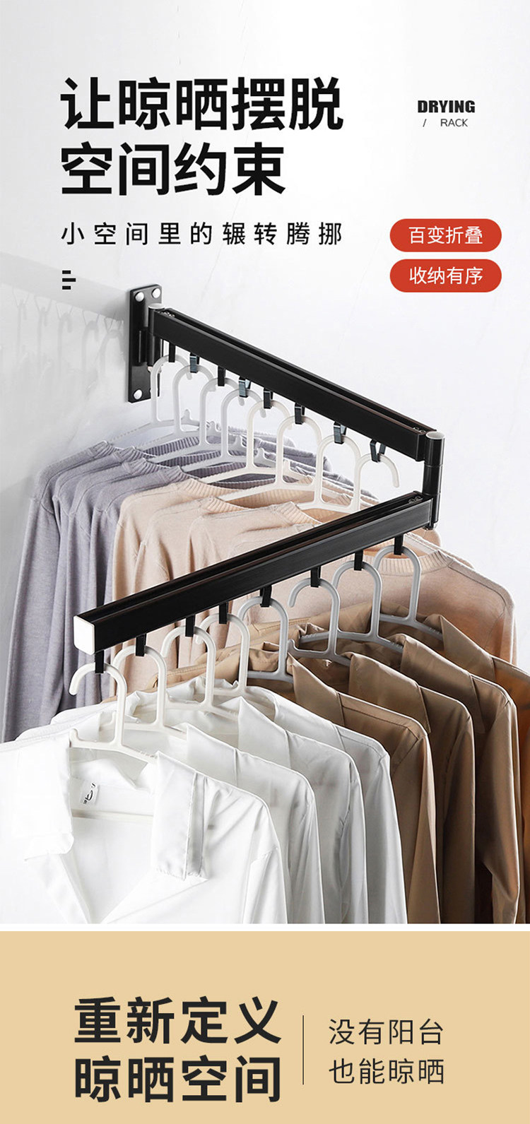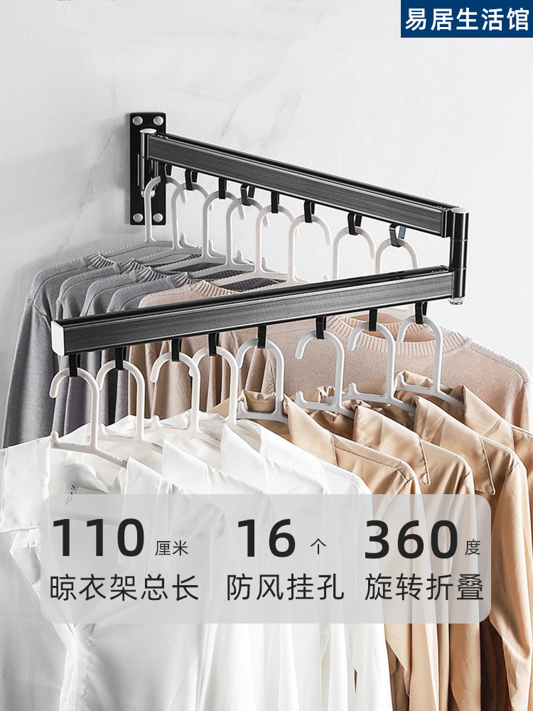 Balcony folding clothes drying rack retractable household window push-pull wall-mounted invisible clothes drying rack outdoor indoor clothes drying