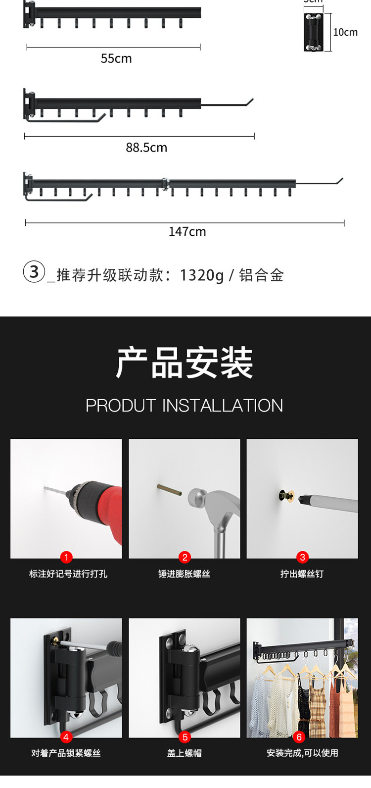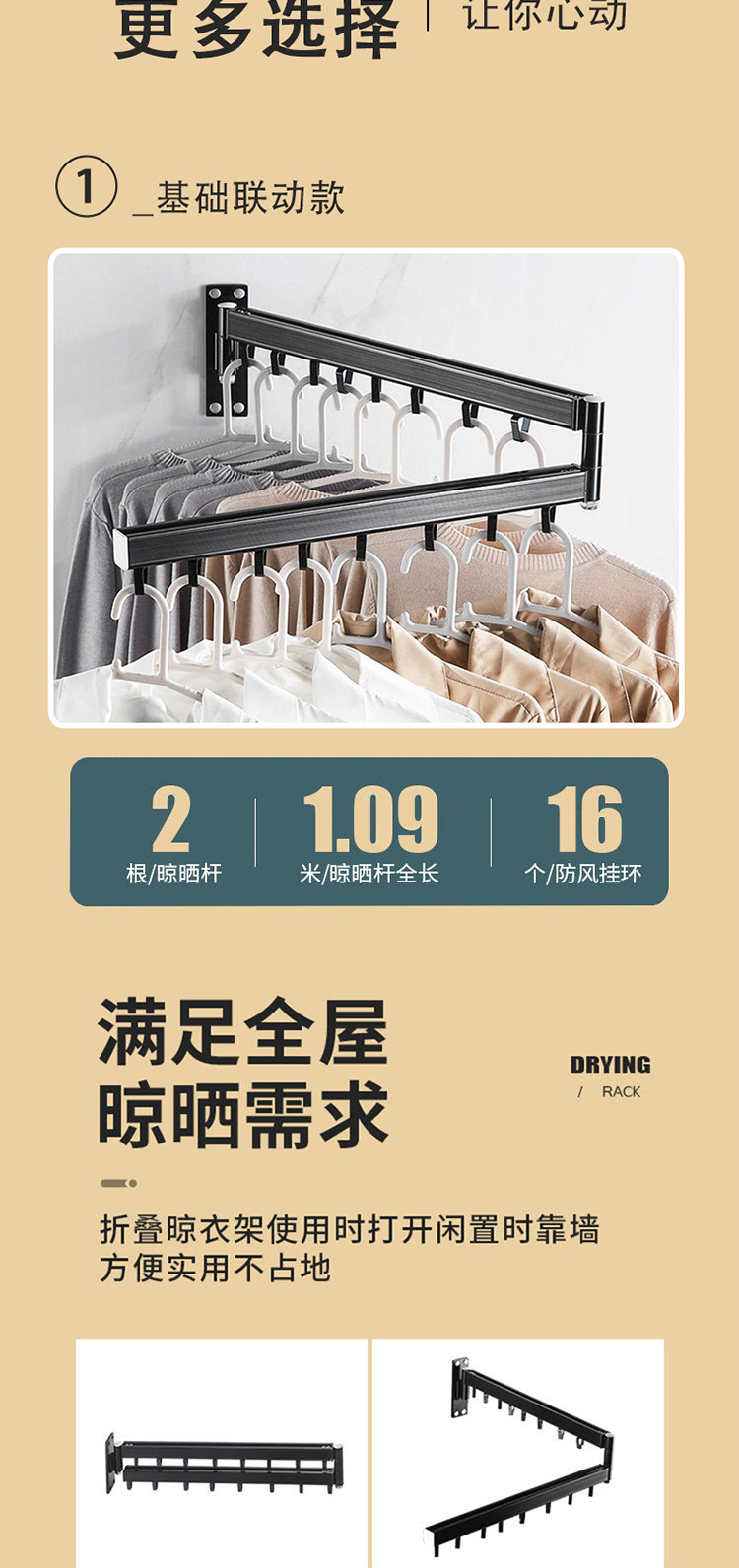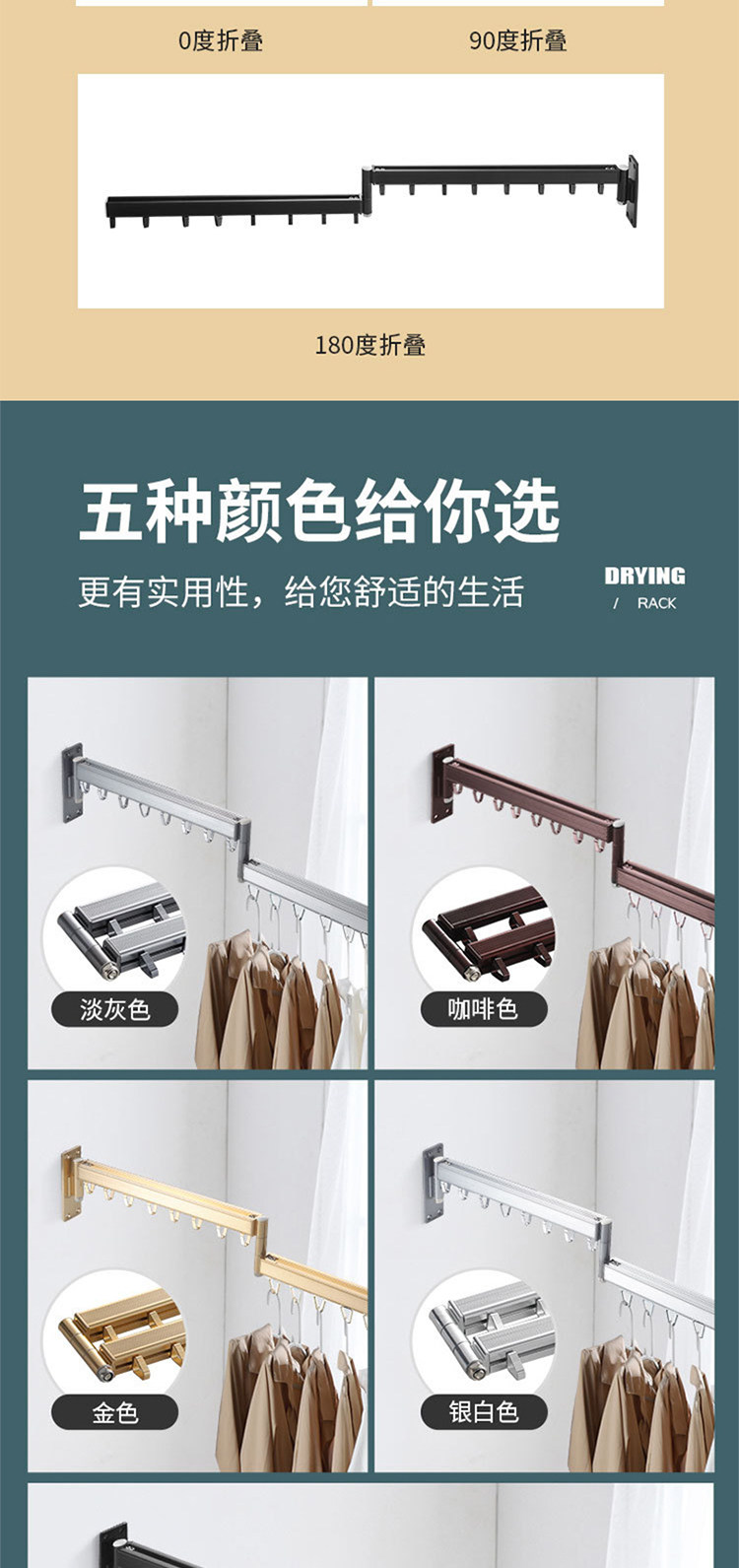Balcony folding clothes drying rack retractable household window push-pull wall-mounted invisible clothes drying rack outdoor indoor clothes drying