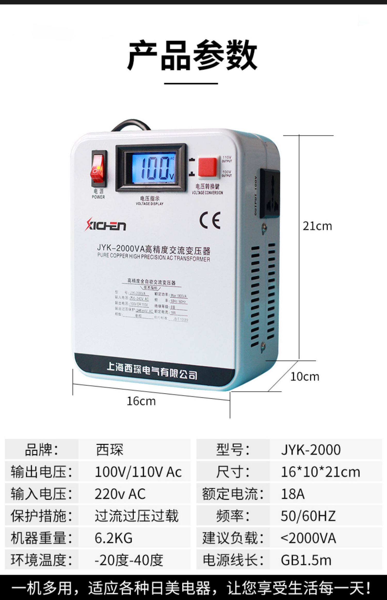 西琛 Японский трансформатор, 110v, 100v, США, 2000W