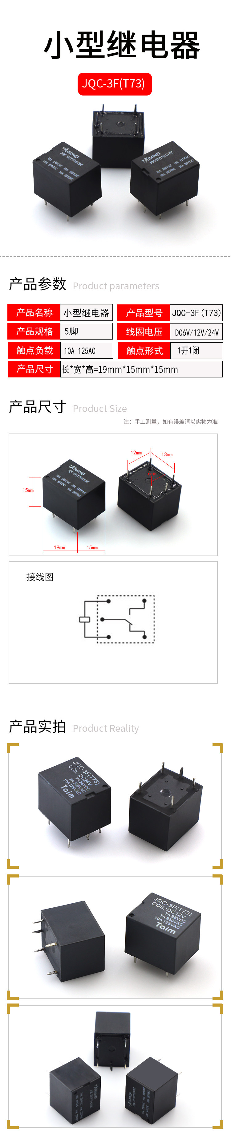 Taiming Small Relay T73 DC12V/24V/6V JQC-3FF промежуточный реле преобразования 5 PIN
