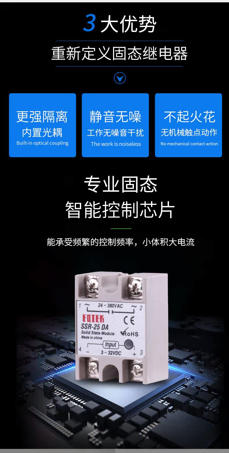 Однофазный твердотельный реле SSR-25DA 25A Одинокий малый модуль 40A DCC AC SSR-40DA