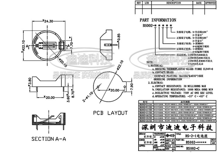 CR2032 Общий блок батареи CR2025 Батарея батарея сиденье BS-2-1 2032 Круглая прямая штекер