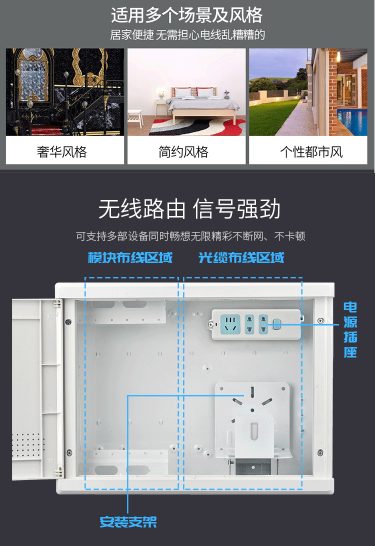 Слабая электрическая коробка Home Multimedia Hub Информационная коробка модулей модуль модуль темный установка оптические волокнисты
