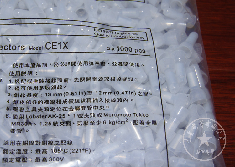 Проводная крышка проводки/закрытая терминал/нейлоновая крышка для пресса/Закрытый терминал Соски CE-1X 1000 зерна/сумка