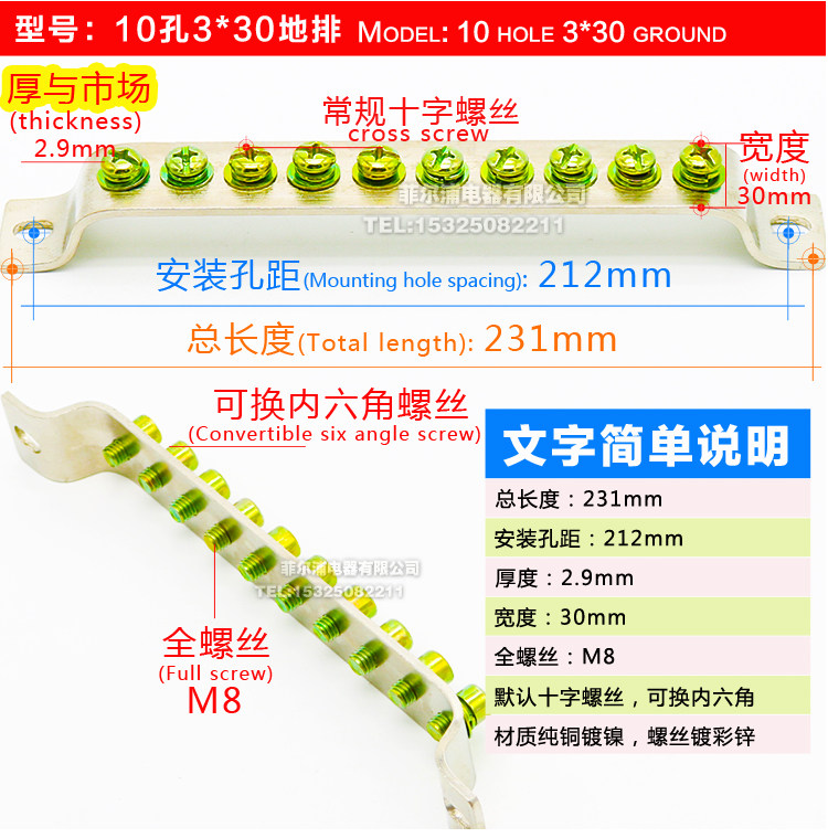 Прямая продажа 10 -отверстия ряд 3*30 Zero ряд 30 шириной электроэнергетическая коробка утолщен и расширила терминал заземления