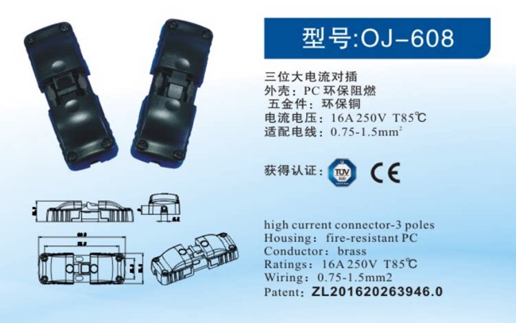 Трехбит -проводная клеммная коробка большие текущие пары высоких кабелей 3 Core -Wires 16a