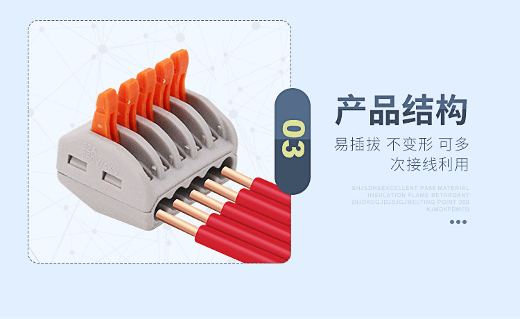 Проводной разъем входит в 4 -Модонскую быстрая проводная клемма нажатие 5 -бит -комбинированное полупроводное полупроводная установка 10 Установка