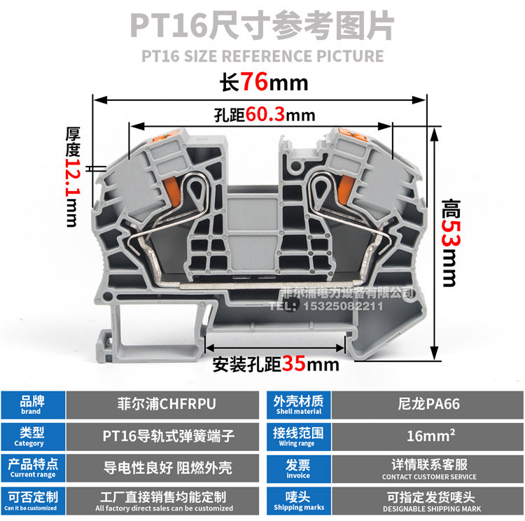 Руководящая рельсовая пружинная терминал Pt16 One Entry One Cond Line строка