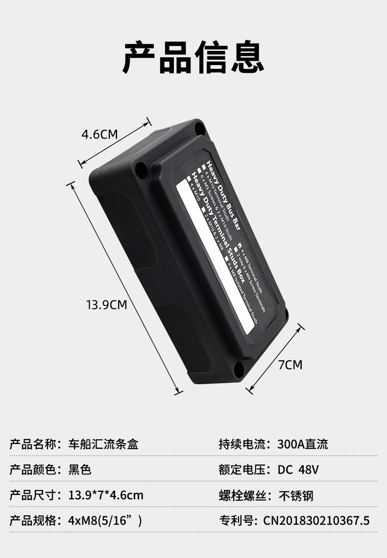 Автомобильная шина M8M10, сильноточная распределительная коробка с двойной шпилькой, клеммная колодка для яхты 300A48V