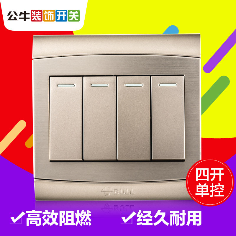Bull Switch Socket Champagne Золотая стена четыре лодки одиночные блоки Bitfront четыре одно -контрольные одно однопроизводительные панели