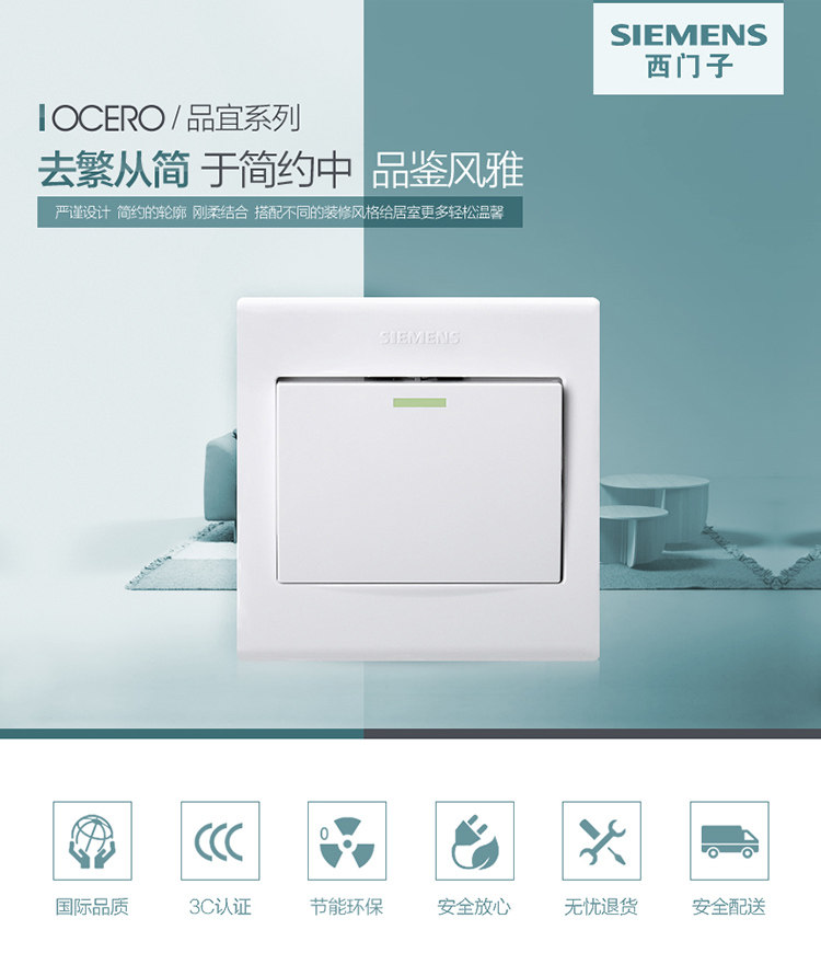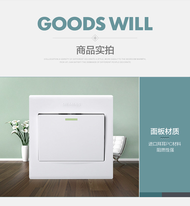Siemens ОДИН -Контрол Переключатель Продукт yiya White Wall Panel Панель Открыть однопокнутый флуоресцентный коммутатор