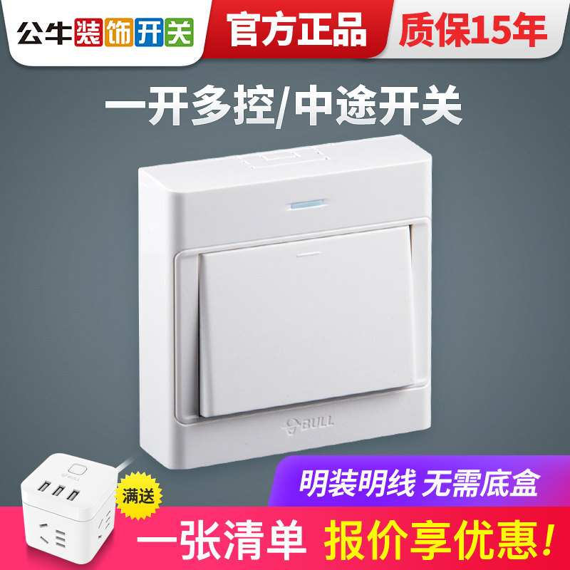 Bull Mingfang Sweatch Panel Panel One One One One Multi -Control Single -Turn Light Switchering Bright Wire Box Ultra -Thin Home