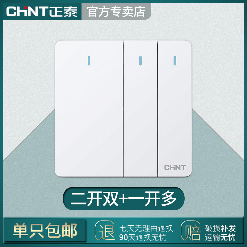Подлинный Zhengtai Switch Spocket Panel Home White Three -Opening Multi -Control 86 Три -контрольный переключатель среднего расстояния два открытого двойного управления