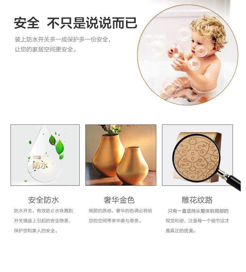 TEP Тип 86 настенного выключателя гнездо с шампанским золотым брызг водонепроницаемы