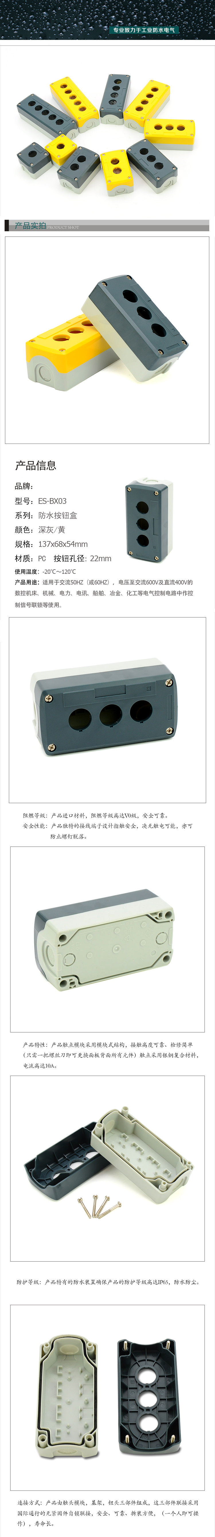 Пластиковая кнопка, водонепроницаемый переключатель, светильник, распределительная коробка