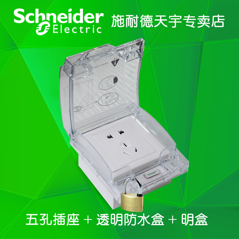 Schneider Водонепроницаемая коробка Ярко -темная установка Пять -отверстие для водонепроницаемой розетки для ванной комнаты.