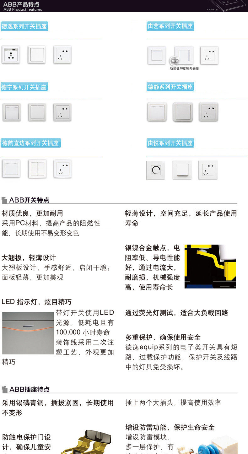 ABB Переключатель, универсальная водонепроницаемая белая световая панель для ванной комнаты