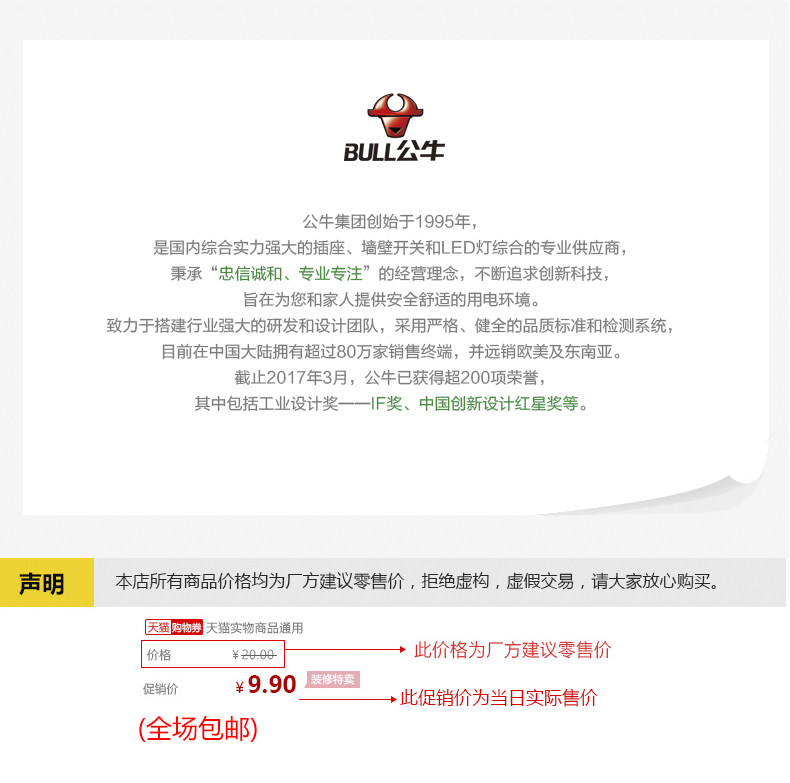 Продавец:bull公牛蓉新合力专卖店