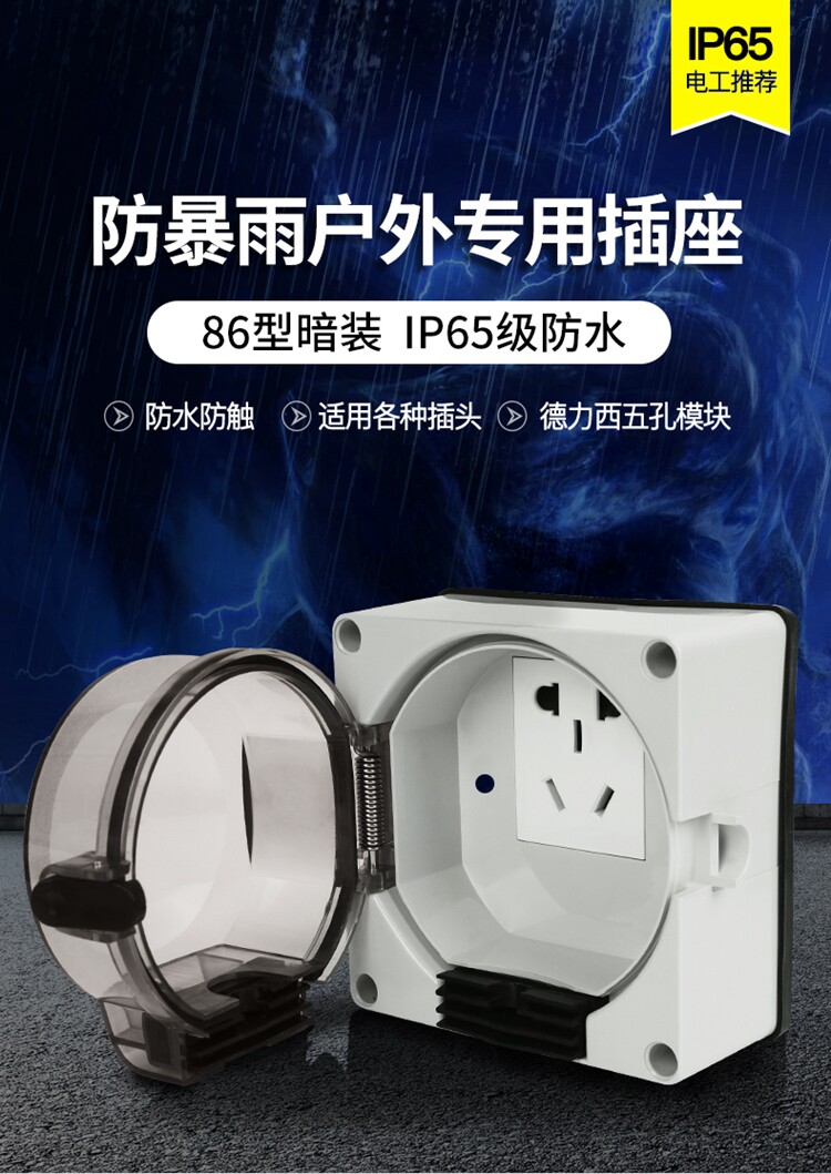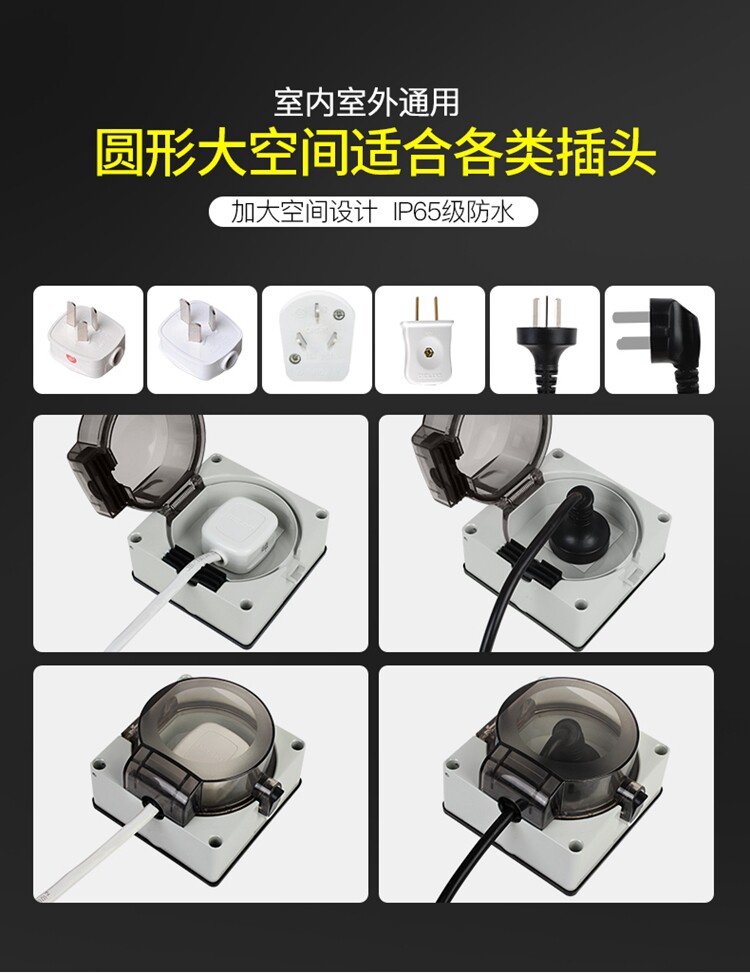 Наружный водонепроницаемый розетка 10A Пять -отверстие для ванной комнаты влажная ванная -надежная легкая утечка утечка