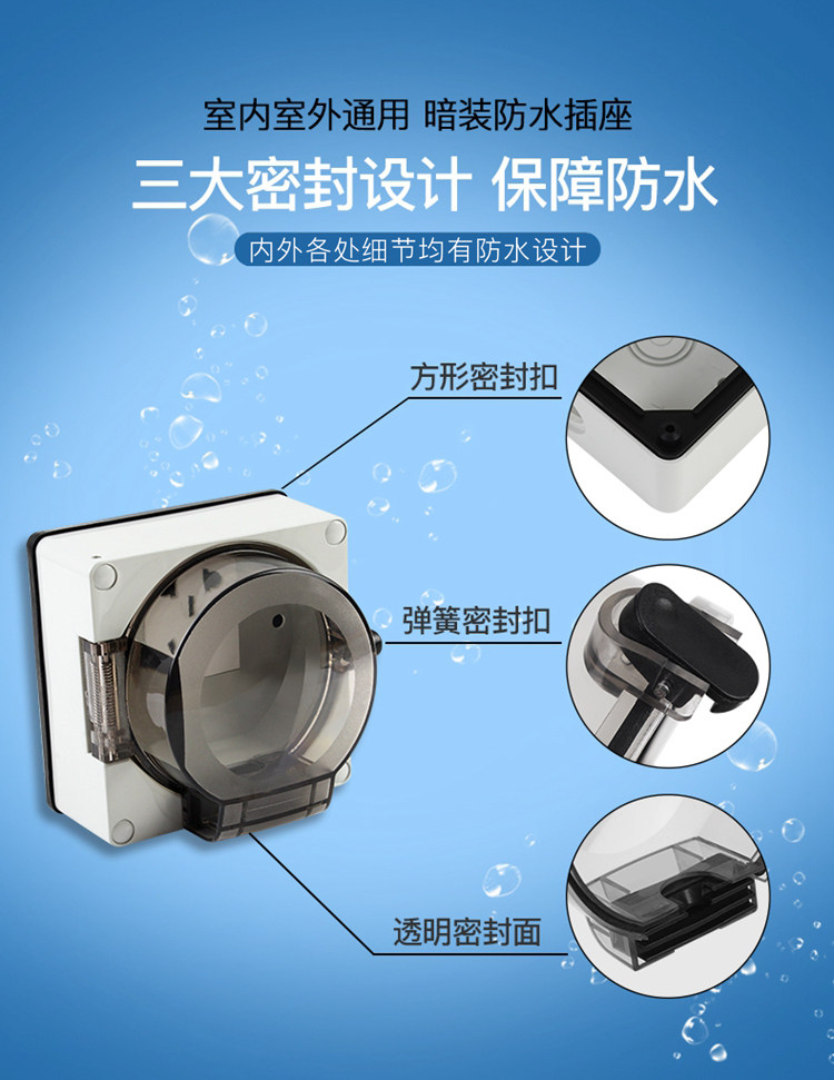 Наружный водонепроницаемый и дождевой гнездо в ванной комнате для ванной комнаты в помещении и на открытом воздухе тайно устанавливается анти -поджигающий источник питания Three -Hole 16a Five -Hole 10a