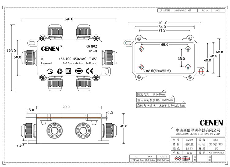 Электрик на открытом воздухе водонепроницаемая ящик для проводки IP68.