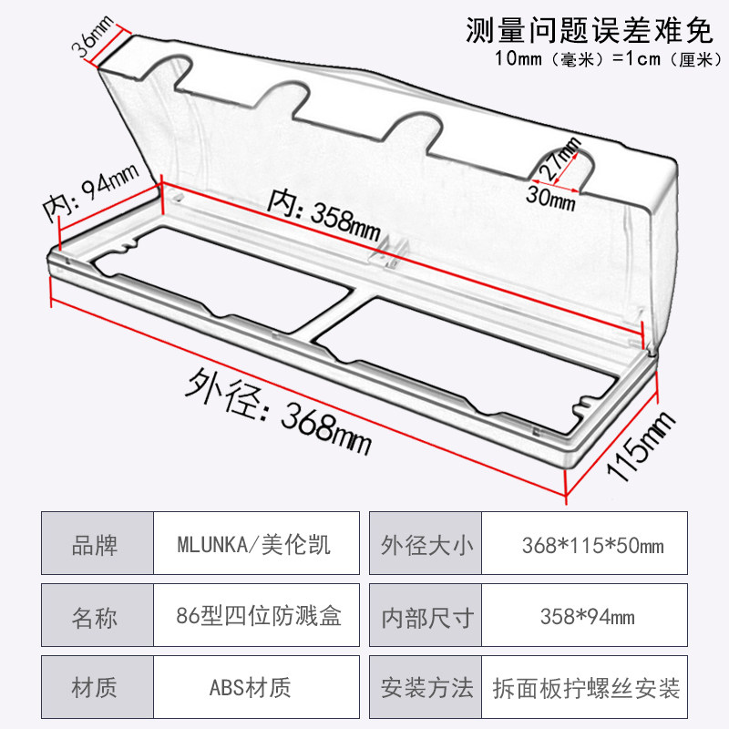 Водонепроницаемый переключатель, прозрачная водонепроницаемая световая панель для ванной комнаты, защитная крышка