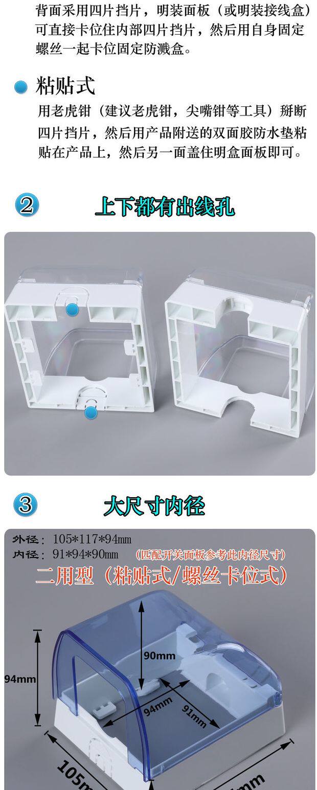 Накладной водонепроницаемый переключатель, защитная крышка для ванной комнаты, универсальная световая панель