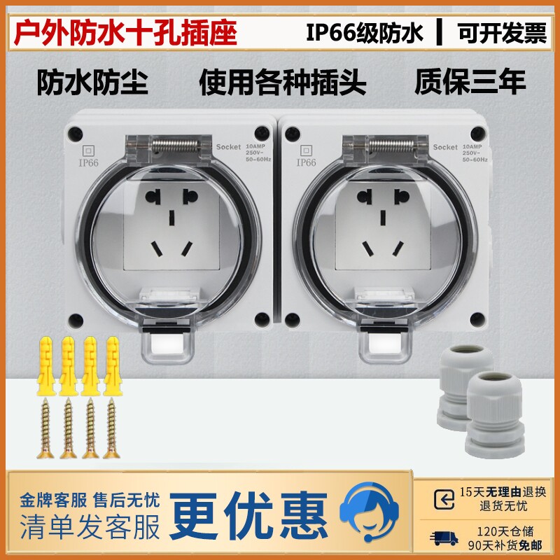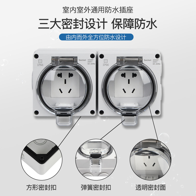 Внешний водонепроницаемый розетка, 2 -бит пять -отверстие и 10 розетки, домашний питания Десять гнезда наружные дождевые водонепроницаемые коробки