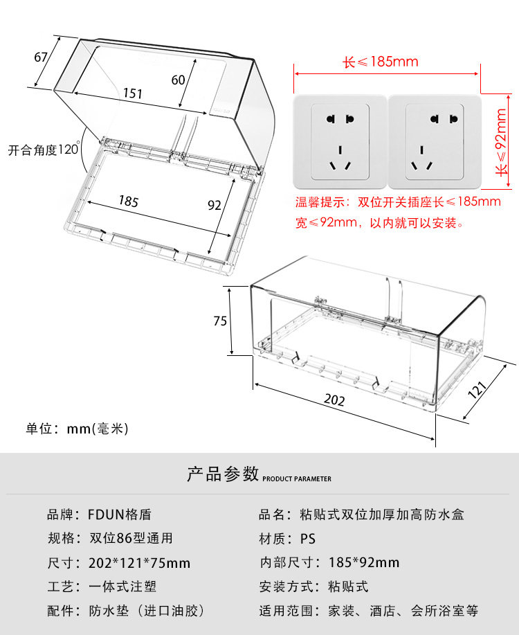 Двойной 86 плюс высота увеличивает двойную полосу с двойным разъемом, двухпрофильная коробка, два -дигит для защиты от утечки в помещении.