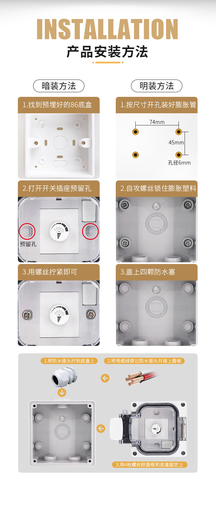 Дорожный водонепроницаемый уличный настенный переключатель