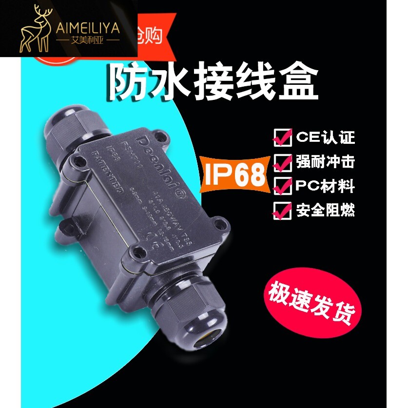 Delai Outdoor Waterpronation Box Lands IP68 Введите с одним выходом и двумя подводными подводными черными расколами