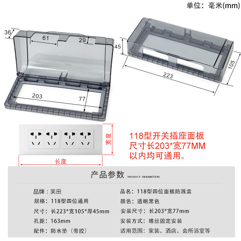 Водонепроницаемая черная световая панель для ванной комнаты для домашнего использования, переключатель, накладки