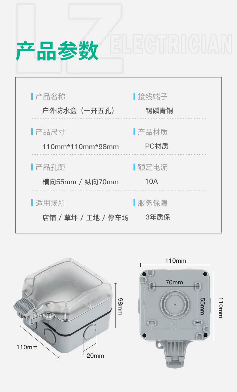 Дорожный водонепроницаемый блок питания, накладной переключатель