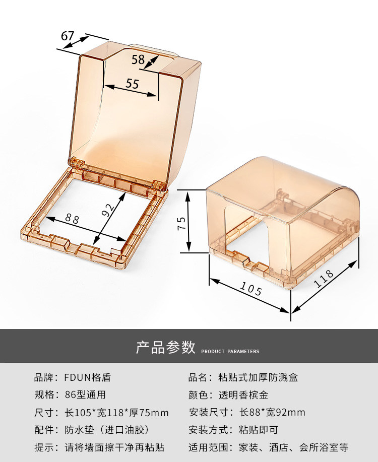 Кофейный самоклеющийся переключатель для ванной комнаты, водонепроницаемая световая панель, защитная крышка