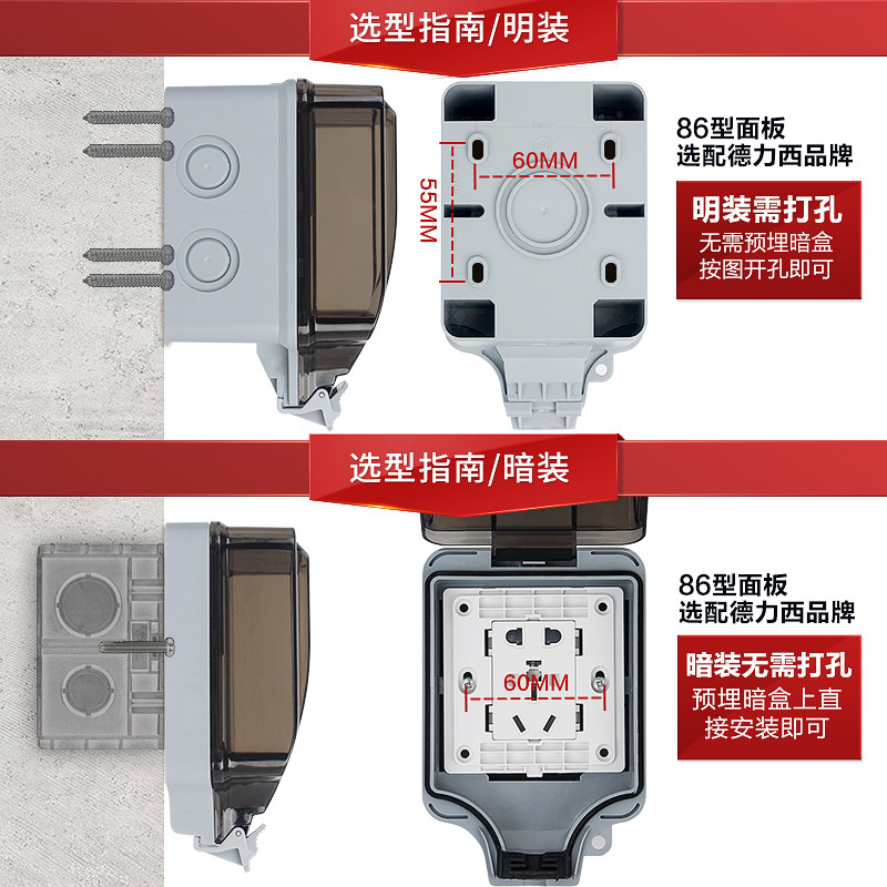 - Одна открытая трех -дыра 16A+темная водонепроницаемая коробка