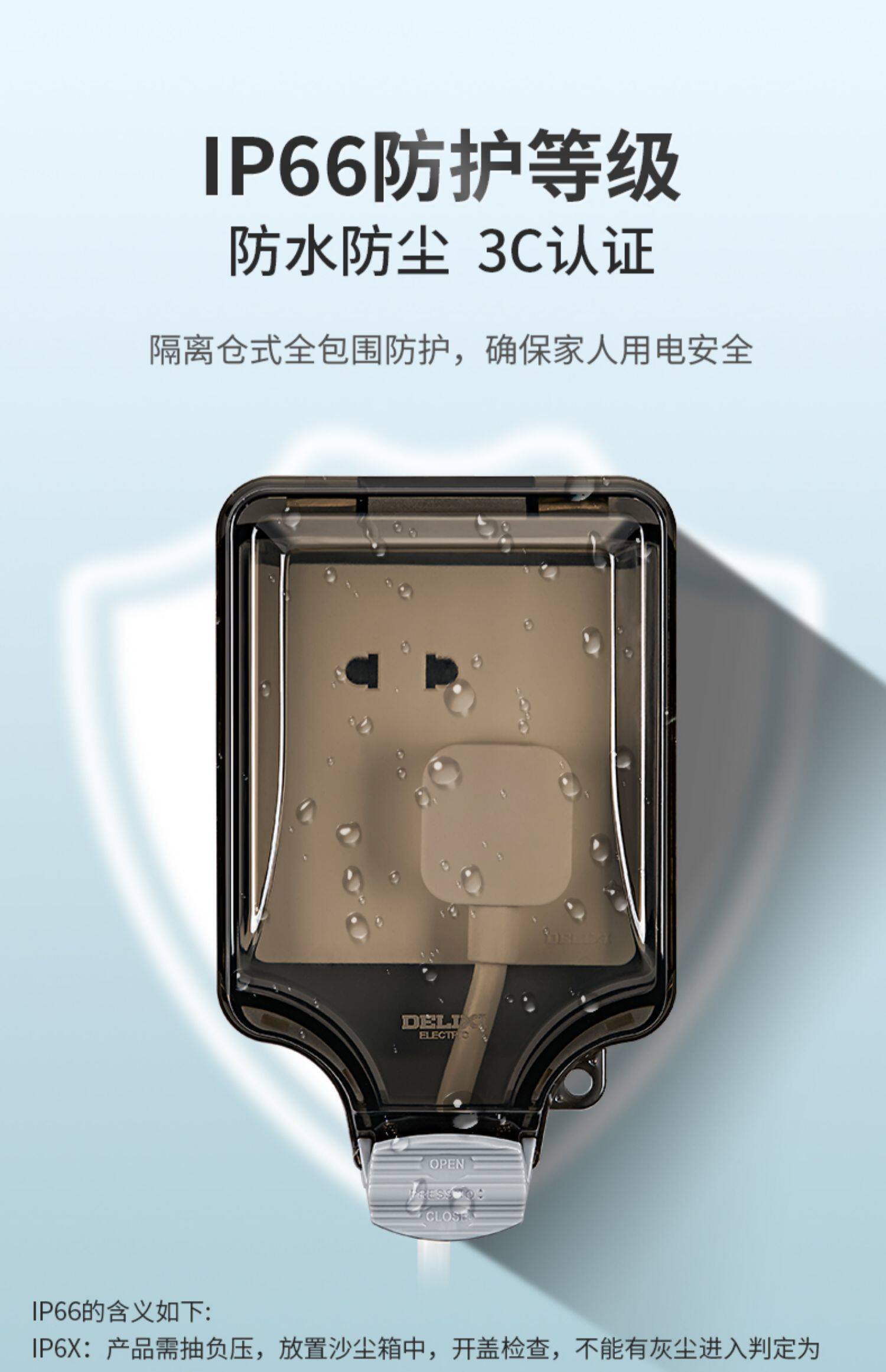 - IP66 водонепроницаемая коробка+16А утечка