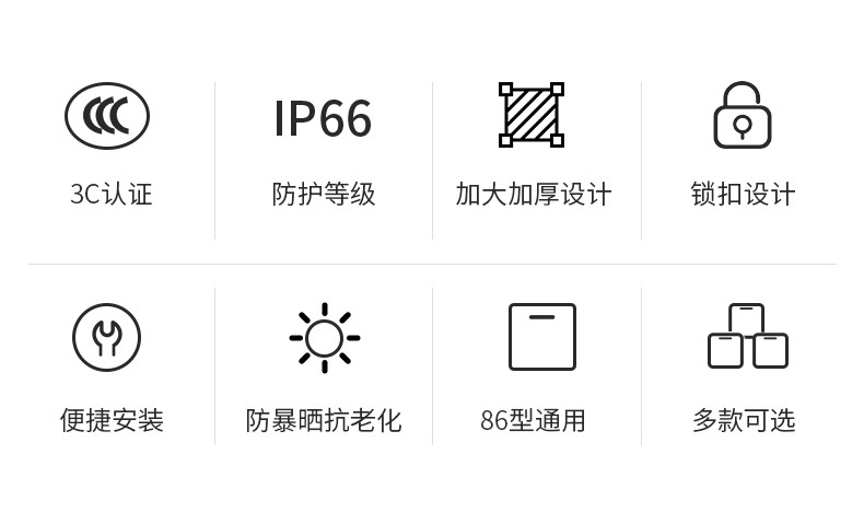- IP66 водонепроницаемая коробка+семь отверстий 10а